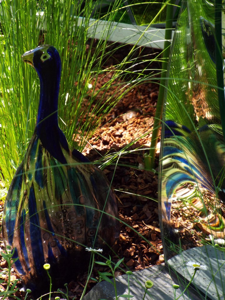 The stand was overshadowed by trees and quite crowded, so my main glass sculpture, Sails, did not show as well as I had hoped, but every so often a shaft of sunlight created magic with it.