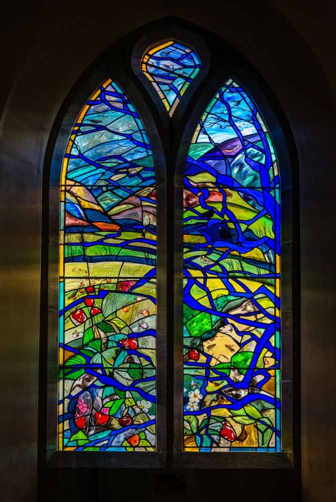This window, commissioned for Manor Church (Kirkton Manor) in the Scottish Borders, is a celebration of the bountiful provision of God through creation.